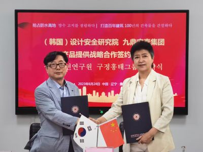 韓國設計安全研究院與遼寧九鼎宏泰防水科技有限公司產品提供戰略合作簽約儀式圓滿成功!